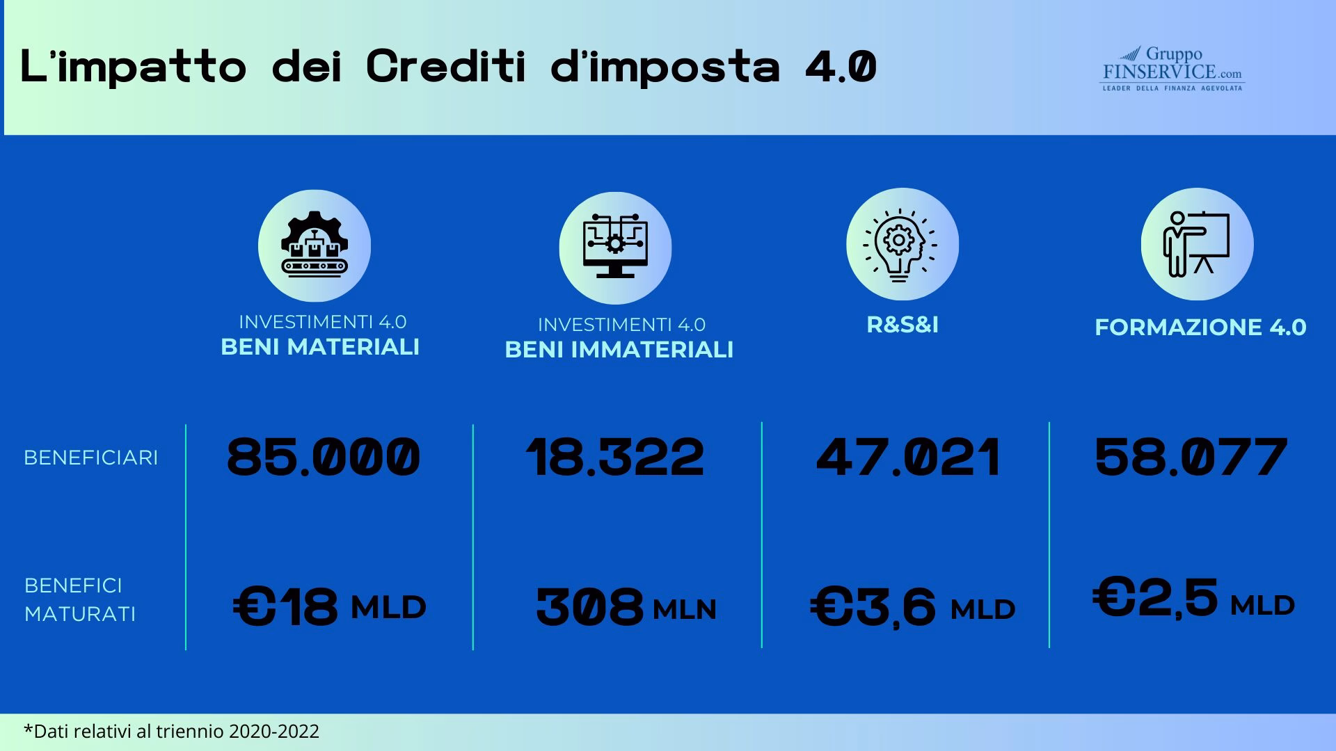 Gruppo Finservice si avvale di un team di esperti, dedicato a rilevare e valorizzare tutti gli investimenti 4.0, integrando le possibili sinergie con altre agevolazioni in un unico piano di lavoro.